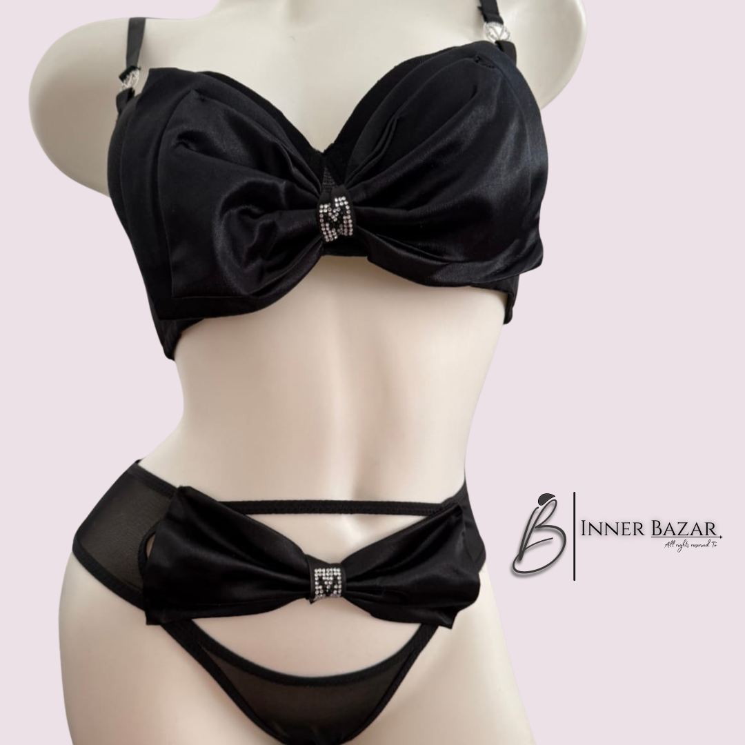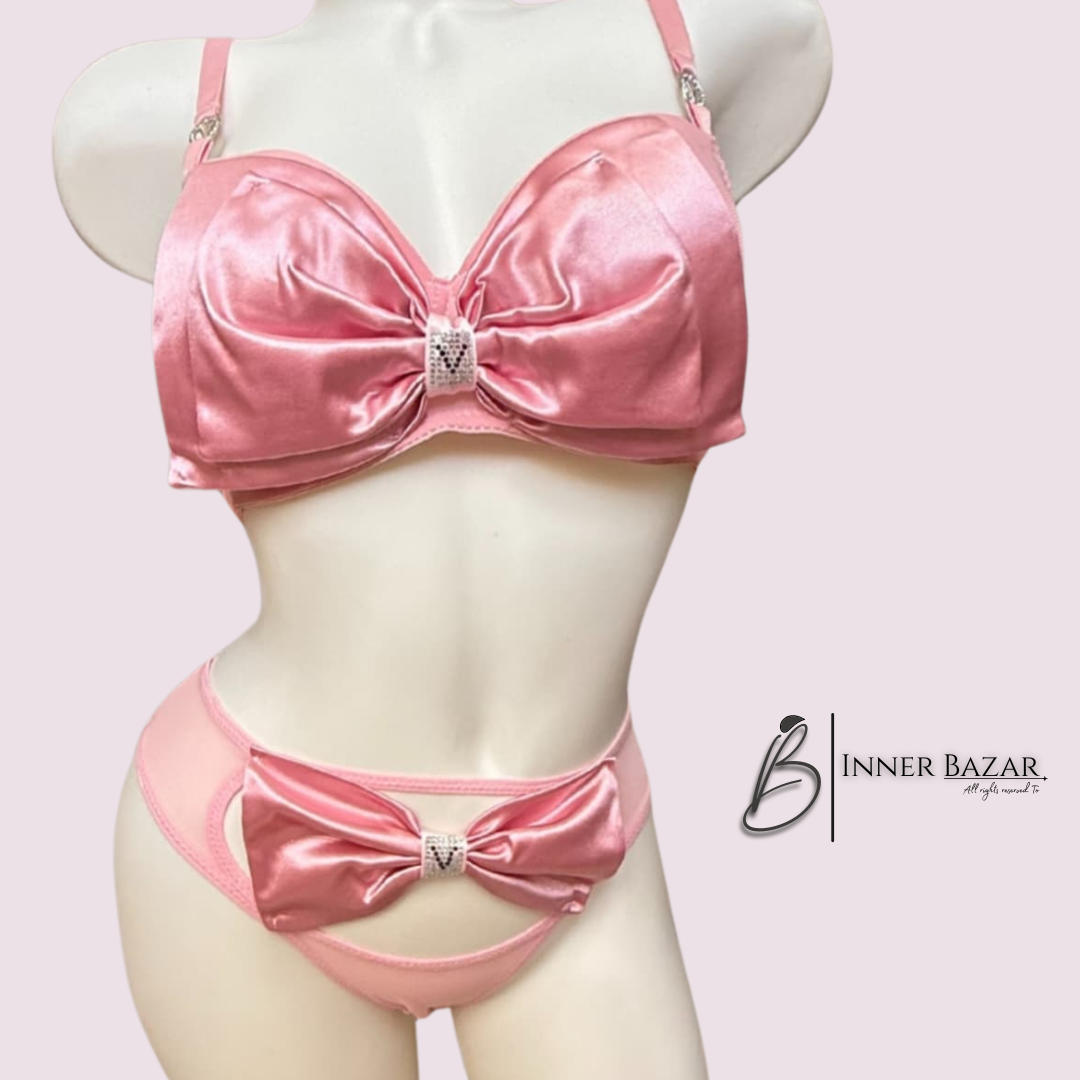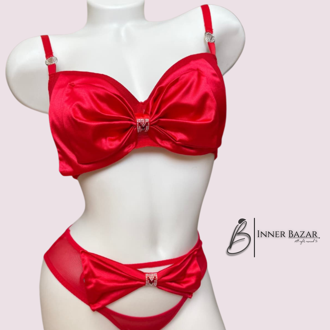 Shop a luxury red satin bra & panty set with an elegant bow design. Soft, stylish, and perfect for special occasions.