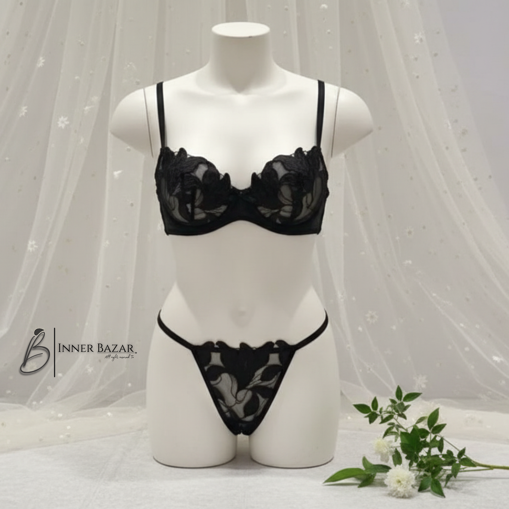 Tulip Underwire Bra & Thong Set – Romantic Sheer Design